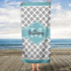 Aqua und Gray Quatrefolien Mit Monogramm Badetuch. Einfach Text bearbeiten, um personalisieren!