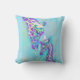 Eine Mutter- und Babygiraffe in den Schatten von Aqua und Lila. Dieses personalizable Kissen kennzeichnet den Namen Ihr Kindes auf der umgedrehteseite in Ihrer Wahl der Schriftartfarbe und Art auf a einer Vielzahl der möglichen Hintergrundfarben.