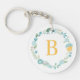 Aqua und Mit Monogramm gelber Blumenreath Schlüsselanhänger