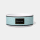 Stilvolle Haustierspeise mit Grafiken aus einem Aqua-und weißen kleinen Polka Dottern-Muster, mit schwarzen Randakzenten und einem schwarzen benutzerdefinierten Textbereich. Personalisieren Sie für Ihr Haustier oder als eine tolle Geschenkidee für einen Freund.