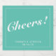 Das hübsche, moderne, minimalistische und trendige Hochzeitsflaschenlabel weist einen aqua-blauen Hintergrund auf (Pantone's 2022 color pick "Cascade") mit weißen, anpassbaren Textblöcken in modernen Schriftart