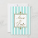 Aqua, White Stripes, Gold Scroll Save the Date Kar
