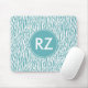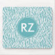 Aqua White Zebra Print Monogram Mousepad