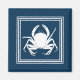 Aquatisches Design mit Krabbendekoration in gestreiften Quadraten auf blauem Hintergrund