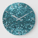 Aquamarin Aqua Blue Funkelnd Imitate Glitzer Grau Große Wanduhr