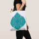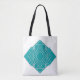 Diese Tasche hat einen kunstvoll inspirierten Deko-Design von Diamantformen und ein Rechteck, sowohl aquamarin als auch silber.