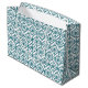 Eine schicke, große Geschenktasche, mit einem ethnischen Muster mit Blume Motifs und Chevrons, Aquamarin auf weißem Hintergrund, den Sie ändern können, wenn Sie möchten. Als Teil der Posh & Painterly 'Boho Bazaar' Kollektion kann dieses Muster leicht angepasst werden, indem die Richtung oder der Maßstab der Musterfliese für ein völlig anderes Aussehen geändert werden.