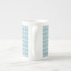 Eine schicke China-Kaffee-Tasse, mit einem ethnischen Muster mit Blume Motifs und Chevrons, Aquamarin auf einem weißen Hintergrund, den Sie ändern können, wenn Sie möchten. Als Teil der Posh & Painterly 'Boho Bazaar' Kollektion kann dieses Muster leicht angepasst werden, indem die Richtung oder der Maßstab der Musterfliese für ein völlig anderes Aussehen geändert werden.