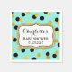Maßgeschneiderte Servietten für Babydusche in aquamarin türkisblau mit schwarz und goldfarbenen Konfetti, bitte beachten Sie, dass Gold nur fotografische Wirkung ist.