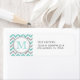 Aquamarin Blau und Grau Moderne Zickzack Rücksendeadressen-Aufkleber mit Monogram.