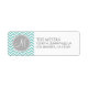 Aquamarin Blau und Grau Moderne Zickzack Rücksendeadressen-Aufkleber mit Monogram. Bitte kontaktieren Sie mich für individuelle Designanfragen! Klicken Sie auf den Link "Den Designer gefragt" unten.