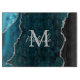 Dieses Schnittboard zeichnet sich durch einen eleganten und glamourösen Marmorhintergrund aus, der mit geode gemsteinten Details und Imitaten silbernen Glitzer Akzenten ausgestattet ist. Das Monogramm kombiniert handgeschriebene Skripte mit modernen serifenlosen Schriftart für ein elegantes und raffiniertes Aussehen. Dies wird das ideale Geschenk, da es mit einem Namen und Initial angepasst werden kann. Die tiefen aquamarinen Blautöne machen es zu einem idealen Ort für Herbst und Winter.