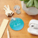 Ein aquamariner, blaugrüner Glitzer-Hintergrund. Dekoriert mit Glitzer-Tropfen. Personalisieren und fügen Sie einen Namen und Monogrammbuchstaben hinzu. Eine moderne handgeschriebene Schrift mit weißen und blauen Buchstaben