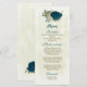 aquamarin-blaue und beige Blume botanische Hochzei Menükarte