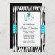 Aquamarin Blue and Black Zebra Heart Mobile Baby S Einladung