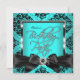 Aquamarin Blue Damask Silver Black Birthday Party Einladung