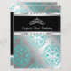 Aquamariner blauer Damast Schwarz-weißen Diamanten tiara Mädchen Prinzessin erste Geburtstagsfeier Einladung.