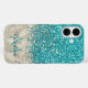 Aquamarin Blue Glitzer, Graue Marmor Handy Case. Personalisiert mit Ihrem Namen und Monogramm.