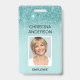 Girly Aqua Aquamarin Blue Berufliche Corporate Work Name, Foto und Job Title Imitate Glitzer und Sparkle Ombre ID Foto Vertical Business Abzeichen. Dieses Design ist einfach und einfach zu bedienen, indem Sie Ihren Vor- und Nachnamen sowie Ihren Jobtitel und Ihre Kopfschuss ändern.