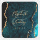 Aquamarin Blue Gold Agate Script Hochzeit Quadratischer Aufkleber