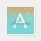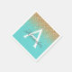 Aqua Blue und Gold Imitats Glitzer und Sparkle Elegant Monogram Geburtstagsparty Napkins. Diese türkisfarbene und Glitzer Geburtstagsparty, Brautparty, Hochzeit, Babydusche Napkin können auf Ihren ersten und ersten Namen angepasst werden.
