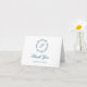 Diese elegante Dankeschön-Karte verfügt über einen aquamarinen blauen Blattkranz rund um ein Monogramm-Skript-Initial. Die Worte "Danke" erscheinen in aquamariner Schrift. Fügen Sie die Namen der Braut und des Bräutigams unten in aquamarinem Blau hinzu.