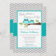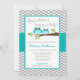 Aquamarin Blue Owl Grau Zickzack Boy Baby Dusche Einladung