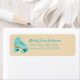 Zeig ihnen, wie du rollst! Diese kundenspezifischen Rücksendeadressen-Aufkleber bieten eine realistische Darstellung eines klassischen Quad Roller Skate in aquamarin. Es ist bereit, mit dem Anfang personalisiert zu sein, indem es Skriptschriften auf der Seite des Skate koordiniert. Ihr Name und Ihre Adresse erscheinen in der Schrift und drucken aquamarine Schrift.
