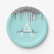 Aquamarin Blue Silver Glitzer Monogram Birthday Pappteller