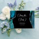 Senden Sie das Wesentliche von Luxus und Romantik mit unserem Aquamarinen Blue Silver Imitats Glitzer Agate Speichern Sie die Datumskarten. Mit aquamarinem blauen Age (Geode-Edelstein) Marmor mit Imitaten silber Glitzer, lädt dieses Design zu einer zeitlosen Eleganz zu Ihrem großen Tag ein. Egal ob Sie eine große oder kleine Hochzeit planen, das wunderschöne Agate Design schafft ein Ambiente des Luxus und der Eleganz. Umfasst Vorlagen, die sich perfekt für den Ton Ihres besonderen Anlasses eignen.