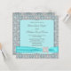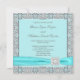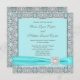 Elegantes aquamarines Blau mit silberner Spitze Hochzeitseinladung. Fügen Sie Ihre Daten vorn und hinten hinzu, indem Sie Ihre Veranstaltungsdetails, den Schriftart, die Größe und Farbe des Schriftartes und den Wortlaut hinzufügen.
