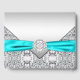 Elegantes aquamarines Blue und Silber Gästebuch mit aquamarinem blauem Diamantband auf wunderschönem silberfarbenem Hintergrund. Dieses aquamarine blaue Gästebuch lässt sich leicht an Ihre Veranstaltung anpassen, indem Sie einfach Ihre Daten im Schriftart-Stil Ihrer Wahl hinzufügen.