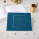 Solid aquamarine blaue Farbe, einfaches Gästebuch mit stilisierten Folienbedruckungen innerhalb eines quadratischen Rahmens, der den Namen der Braut und des Bräutigams sowie das Hochzeitstermin in Ihrer Auswahl an Farbfolienbedrucken enthält. Hier in Silberfolie gedruckt. Wählen Sie Ihren Gastbuchstil aus.