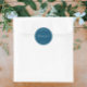 Dekorieren Sie Ihre Gastgeschenk Hochzeit-Verpackung mit diesen runden Aufklebern, die eine aquamarine blaue Farbe mit weißem, stilisiertem Schrift aufweisen. Personalisieren Sie Ihre Aufkleber, indem Sie Braut- und Bräutigam-Namen und Hochzeitstag mit Ihrem eigenen ersetzen. Wählen Sie Ihre Aufklebergröße aus.