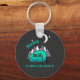 Schlüsselanhänger zum Thema Camper mit inspirierendem Slogan "Zuhause is where you park it", der nach eigenen Worten bearbeitet werden kann. Gedruckt mit einem Bild eines aquamarinen Teardrop-Stil Reise Trailer gegen graue abstrakte Berge. Mond und Sterne. Mehr Design und Geschenke zum Thema Wohnwagen auf Camp_and_Hütte auf Zazzle.