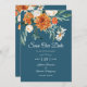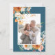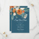 Dusty Blue Terracotta Herbst Blumenzwiebeln Hochzeit speichern Sie das Datum. Elegante bezaubernde Herbsthochzeit mit Aquarellfarben-Blume und eleganter Typografie mit Foto auf der Rückseite der Karte gerahmt mit Grün und Blume.