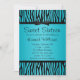 Aquamarin Blue Sweet 16 Einladungen. Ein aquamarines, blaues und schwarzes Zebra-Tier druckt 16 . Geburtstag Geburtstagseinladung.