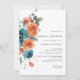 Aquamarine und verbrannte orange Blumendusche. Elegante Aquarelldusche mit Blumendusche, die mit hübschen handbemalten Aquarellfarben-Blume in einem Bouquet in Rostorange und aquamarin in dunklen Tönen gestaltet ist, perfekt für Sommer und Herbst Brautparty. Sie können die Formulierung, den Stil, die Farbe und die Größe des Schriftartes vor und hinter der Einladung personalisieren. Matching-Elemente verfügbar.