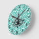Aquamarin Damask Black Chandelier Runde Wanduhr