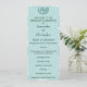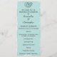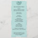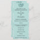 Ein sehr elegantes, maßgeschneidertes Hochzeitsprogramm in weichem Aqua / aquamarin, Teil des Set "Aquamariner Damast", das Hochzeitskunst mit einem leicht aquamarinen und weißen Damast-Muster mit aquamarinem Ornament darstellt.
