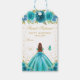 Dieses elegante und glamouröse 16 . Geburtstag Geburtstagsgeschenk-Tag kann mit einem Namen personalisiert werden. Das Design besticht durch eine wunderschöne Prinzessin mit braunem, rotem Haar und feiner Haut in einem aquamarinen blauen Ballkleid. Der Text kombiniert handgeschriebene Skripte mit modernen serifenlosen Schriftart für ein elegantes und raffiniertes Aussehen. Die Blumenarrangements, Schmetterlinge und Goldkonfetti bilden die perfekte Mischung aus rustikal und schick. Das ist ideal für Geschenke und Gastgeschenke. Grafiken von www.etsy.com/uk/shop/SunflowerDayLove