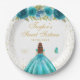 Aquamarin Floral Brown Hair Princess 16 . Geburtst Pappteller