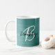Aquamarin gebürstetes Schwarz-weißes Script Monogr Kaffeetasse