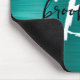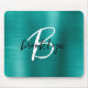 Dieses elegante personalisierte Mauspad verfügt über ein Monogramm und einen Vornamen in modernem Schwarz-Weiß-Skript auf einem aquamarinen, gebürsteten Metallhintergrund.