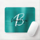 Aquamarin gebürstetes Schwarz-weißes Script Monogr Mousepad