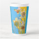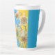 Hand Pink blau gelb lackiert Daffodil floral Latte Tasse. Ein wunderschönes Blumendesign in Aquarelltönen. Entworfen aus meinen ursprünglichen Aquarellbildern, die ich aus meinem eigenen Blumengarten gemalt habe.