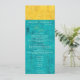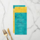 Hochzeitsmenü-Karte mit hellblau-gelb-goldfarbenen, mit Textur bedruckten Papierhintergründen. Helle Sommergründe. Vintage Wedding Menu Card. Aquamarine Gelbe Sammlung.