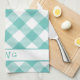 Unser hübsches mit Monogramm Küchentuch aktualisiert das klassische Gingham-Motiv in großzügiger Skala, diagonaler Ausrichtung und sommerlicher Farbpalette von türkis aquamarin und weiß. Fügen Sie eine drei erste Monogramm in der Koordinierung aqua am unteren Rand, wenn gewünscht für ein einzigartiges Haus wärmen Geschenk oder Gastgeberin Geschenk.