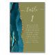 Der links Rand dieser eleganten, modernen Hochzeitskarte mit einer aquamarinen Aquarellgrenze, die mit Imitaten vergoldetem Glitzer bestickt ist. Das Wort "Tabelle" erscheint in der Elfenbeinhandschrift auf einem olivgrünen Hintergrund. Fügen Sie die Namen Ihrer Gäste hinzu, die jeder Tabelle zugeordnet sind.