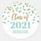 Individuelle Name-Klasse von 2021 Abschluss Aufkleber mit Gold und türkisfarben Konfetti Muster.
